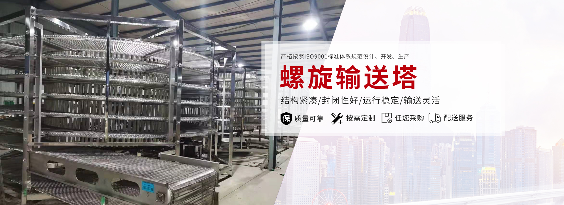 ? 主營:網帶輸送機、網鏈輸送機、鏈板輸送機、皮帶輸送機、轉彎機、滾筒輸送機、提升機、烘干機、螺旋塔等